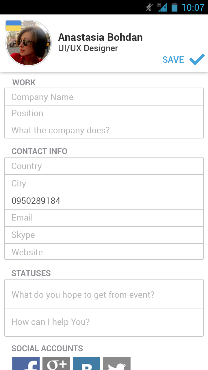 In the end of the event You’ll have not a pack of paper cards and the question :"Who are these people and what are we talk about?" But detailed information about each participant and notes about the meeting in your smartphone.
